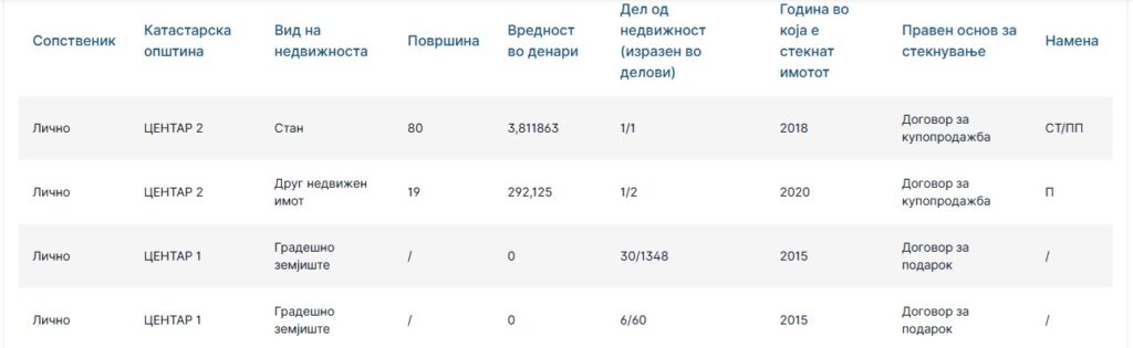 На свое име пријавил недвижен имот во скопски Центар.