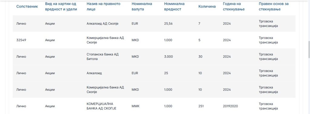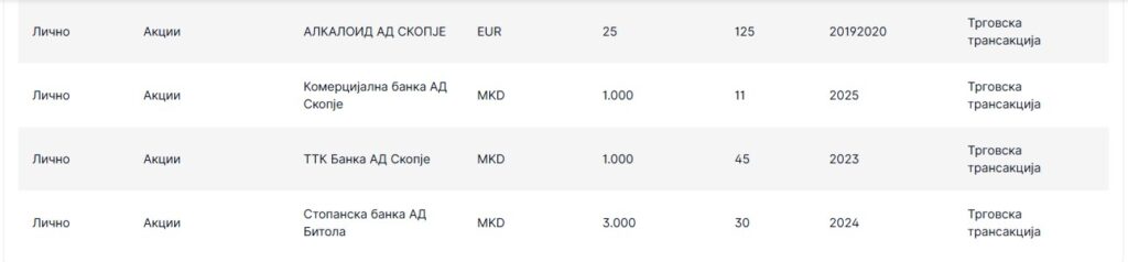 Пријавил и акции во компании чии акции важат за најтргувани на Македонската берза.
