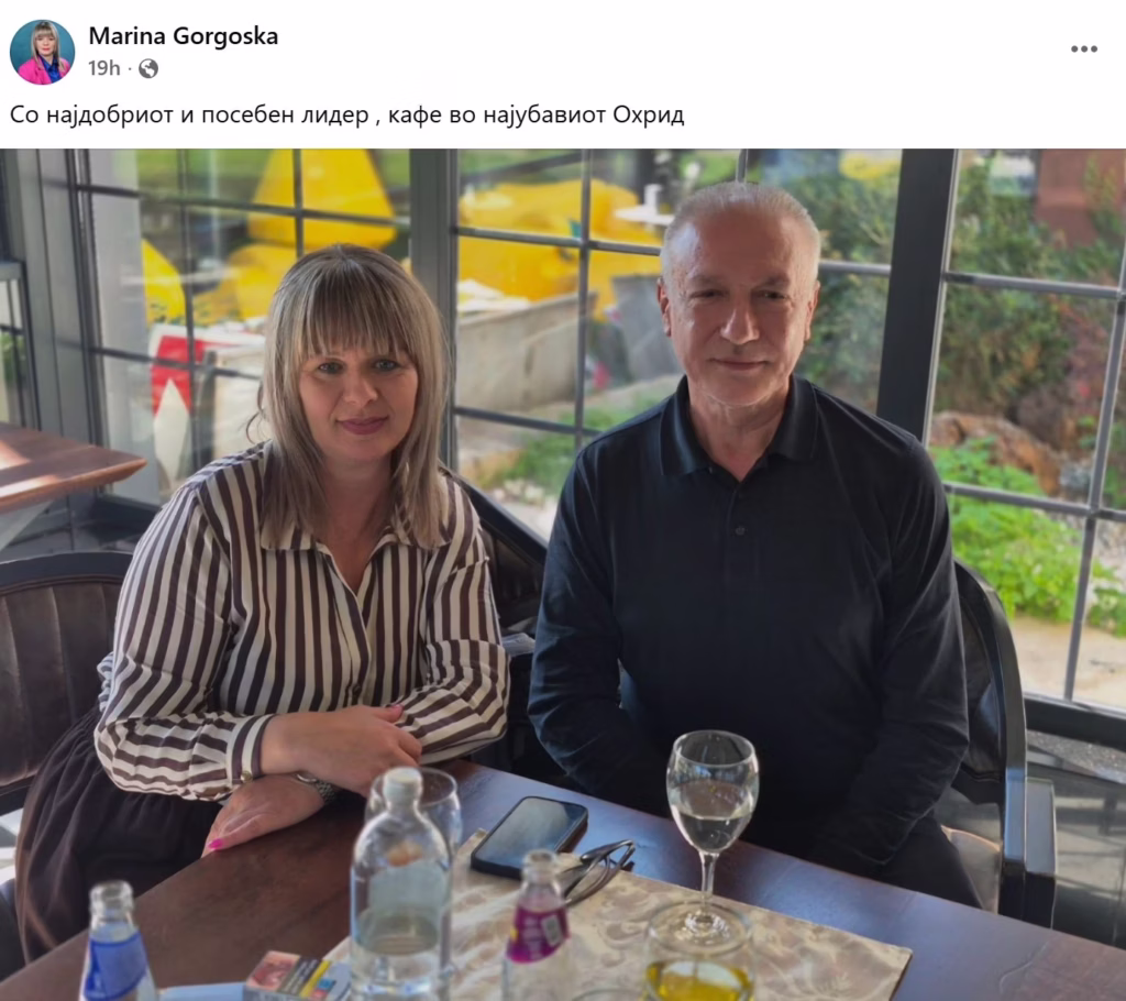 На една од фотографиите Црвенковски, кој со години официјално е повлечен од јавниот политички живот, во Охирд е на маса со актуелниот градоначалник на Општината, Кирил Пецаков од ВМРО-ДПМНЕ, пратеникот на партијата, Саше Доневски и Јован Мирчевски, сопственикот на „Пупе Компани“, а на втортата, е со Марина Горговска, носителка на советничката листа на ЗНАМ во Охрид.