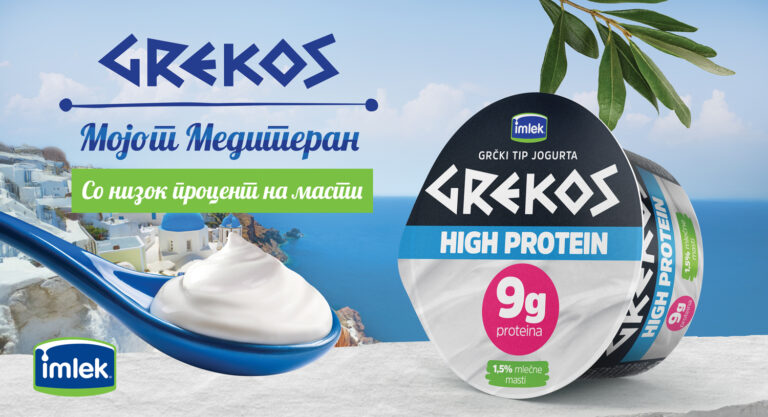 Инспириран од извонредната историја и култура на Грција, богатите ароми на Медитеранот и автентичните вкусови на грчката кујна, Грекос е јогурт што нуди вистинско уживање и чувство на слобода, како прошетка по сончевите плажи, опкружени со мирис на борова шума и звуци од тиркизните бранови. Денес Грекос се препознава како