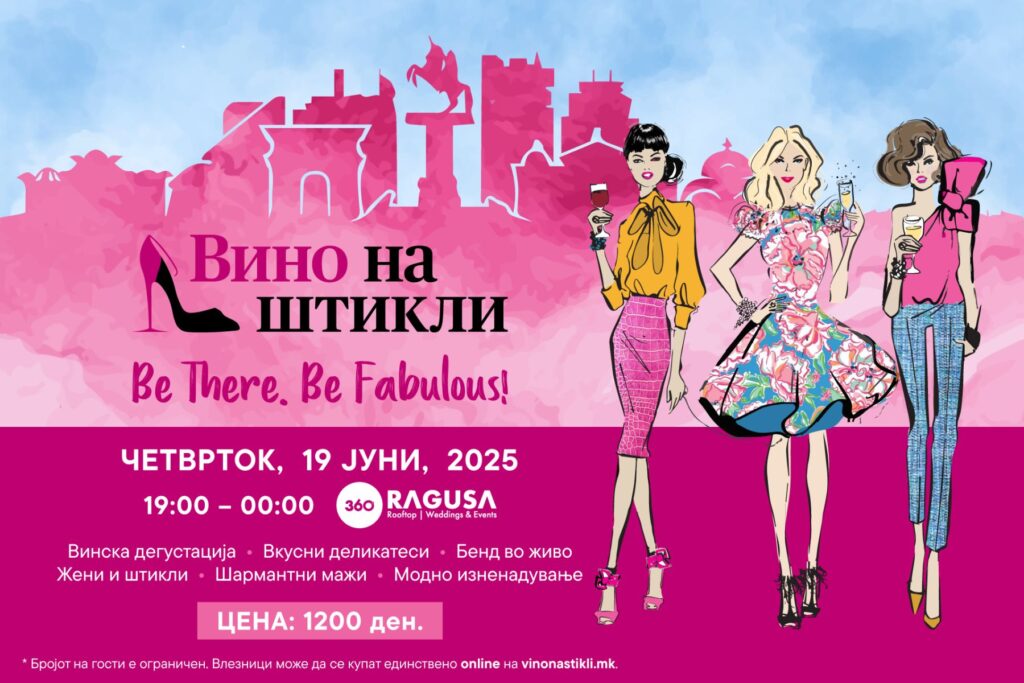 Седмото издание на винскиот салон „Вино на штикли“, настан кој ја слави винската култура, креативната енергија и софистицираниот урбан дух, ќе се одржи на 19. јуни (четврток), во Ragusa 360 Rooftop.