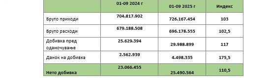 -Оперативните расходи во периодот 01.01-30.09.2025 година се зголемени за 2,5%. Финансиските расходи се намалени за 4,3% во однос на минатата година, велат од таму.