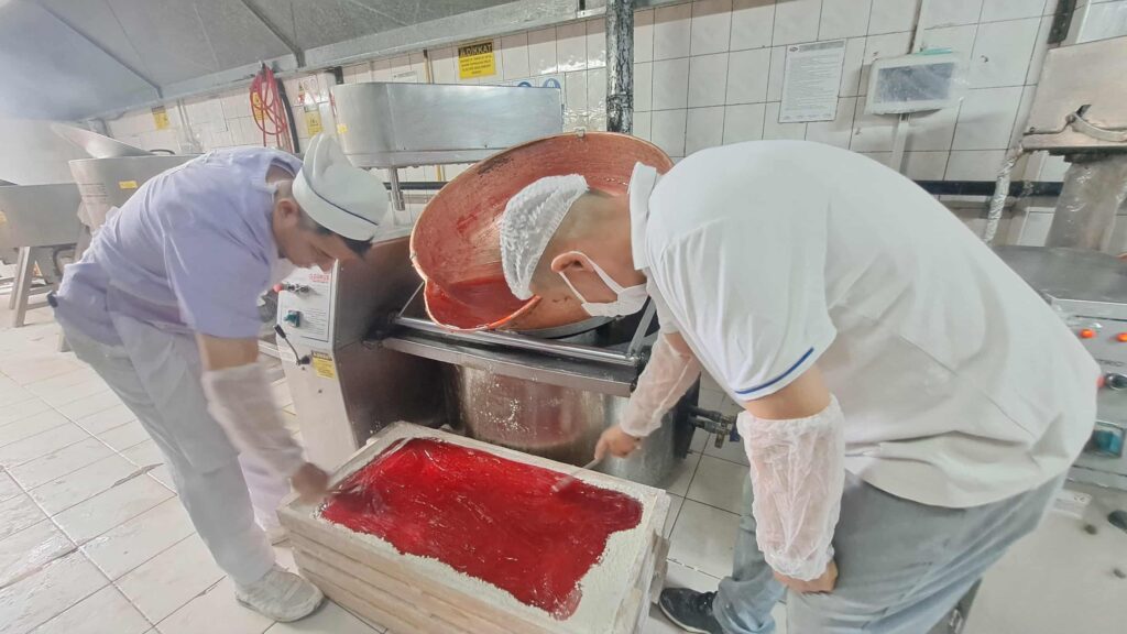 Најпрво, смесата се вари во специјални машини, а потоа истата се излева во калапи кои се посипуваат со шеќер во прав.