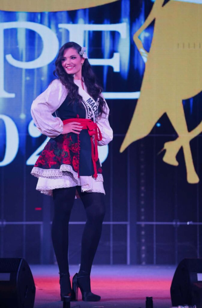 Националниот фустан во кој се претстави Моника Црнокрак беше изработен специјално за овој настан од нашата модна креаторка Наташа Карчева.