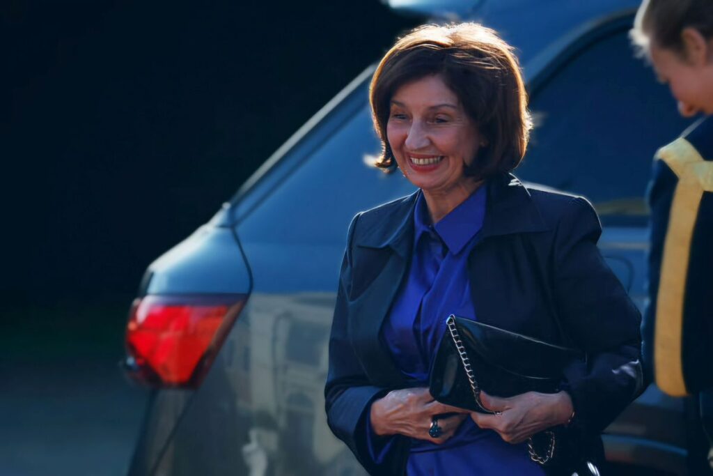 Како што може да се забележи од фотографиите таа е на маса со украинскиот колега Володимир Зеленски.