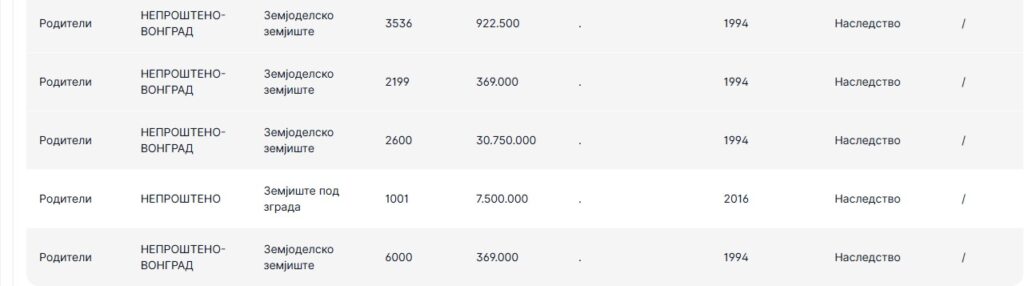 На име на родителите пријавил неколку парцели земјоделско земјиште во Непроштено.