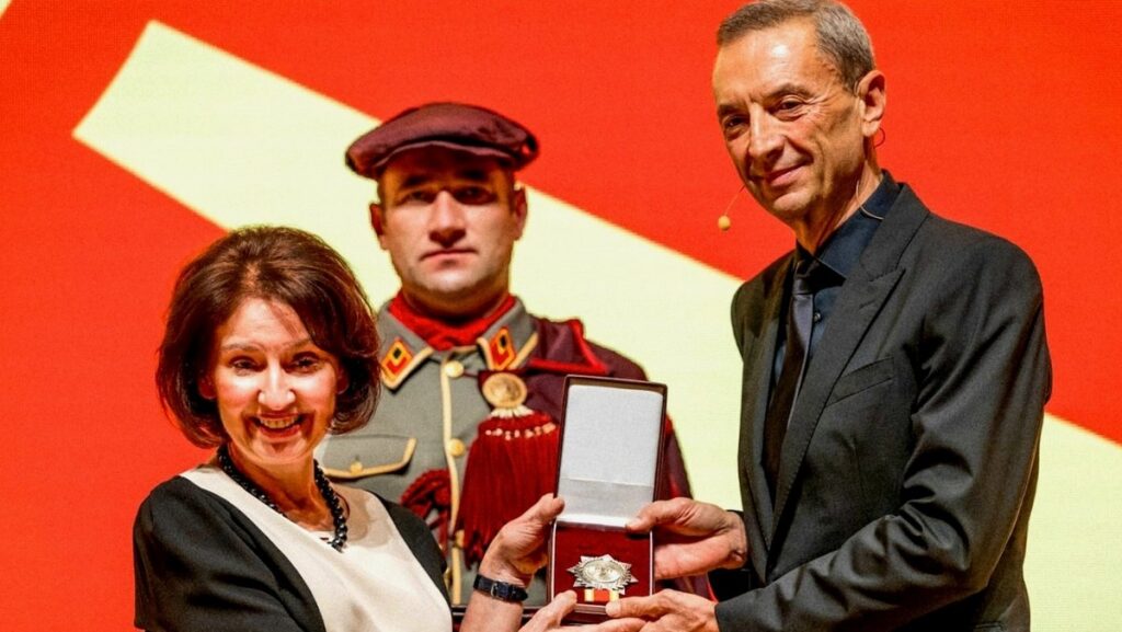„Најмалку што можеме да сториме е да му одадеме признание,“ рече Сиљановска Давкова на доделувањето на признанието во Македонска филхармонија, каде што присуствуваа и премиерот Христијан Мицкоски, министри, градоначалници, доктори, планинари, пријатели.