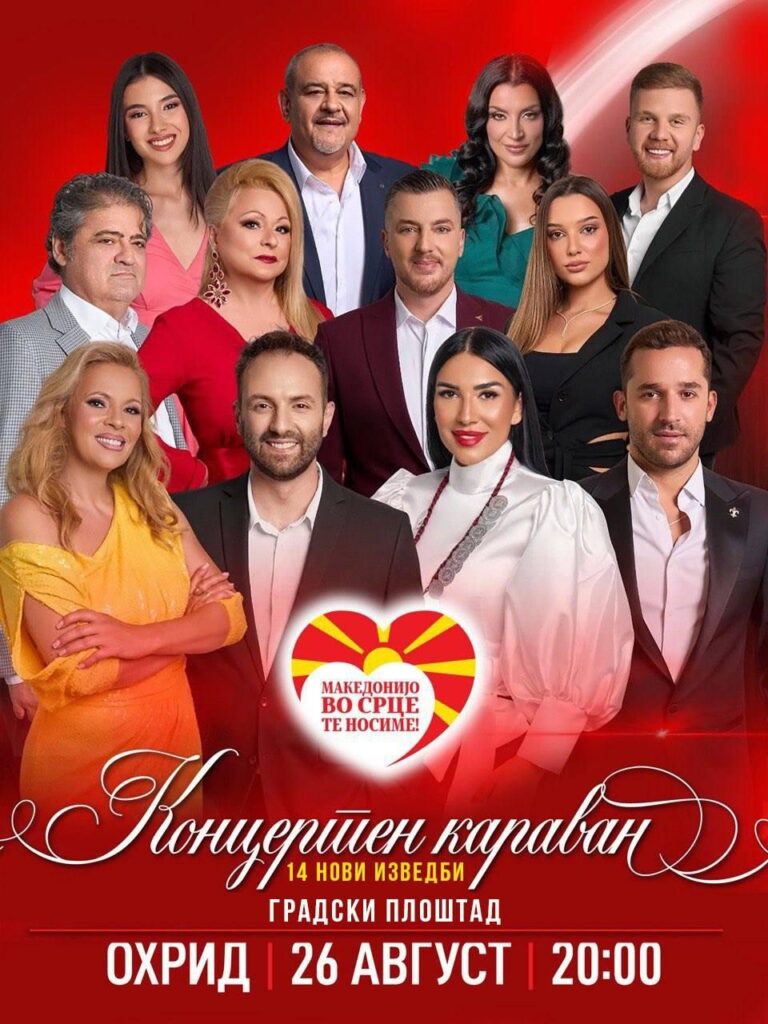 Градовите ширум Македонија веќе одекнаа со звуци на љубов, традиција и гордост. Илјадници луѓе се собраа под отворено небо, со едно срце и една песна – за Македонија. На концертот во Битола, платото пред Офицерскиот дом беше претесно за сите што сакаа да ја почувствуваат магијата на 14-те нови композиции – химни на љубовта кон татковината. Во Гостивар, емоциите кулминираа со силна порака: Македонската песна живее!