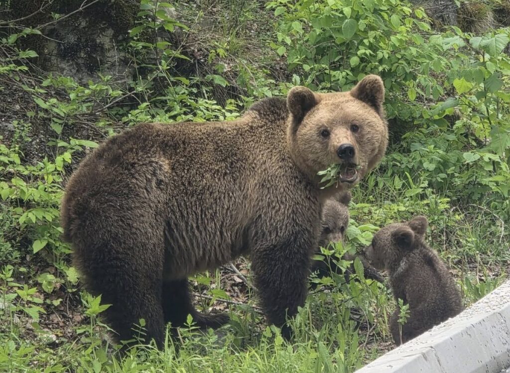 (Видео) Мечка со две мечиња снимена покрај патот Маврово-Дебар