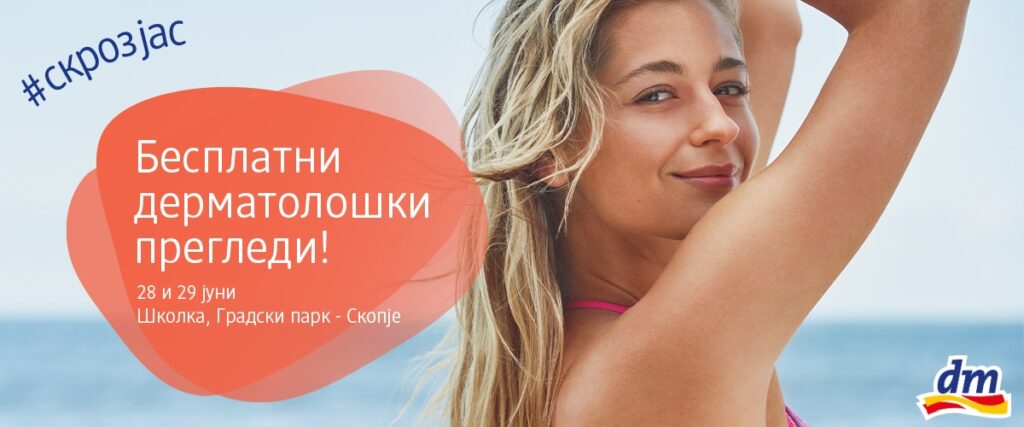 Под слоганот ,,Го сакам сонцето, но ја сакам и мојата кожа“, овој јуни dm повторно ги повикува сите да се погрижат за своето здравје. Иако сонцето е извор на радост и енергија, важно е да се заштитиме од неговите штетни ефекти. Прегледите се клучни за навремено откривање на потенцијални проблеми и за одржување на здравата кожа.