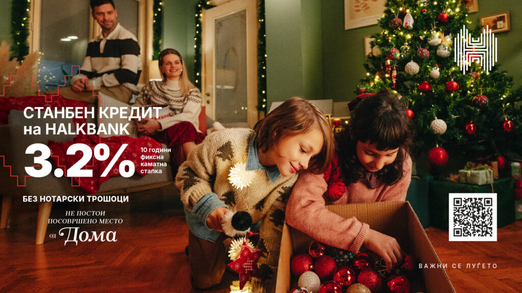 Станбениот кредит на Халкбанк е креиран да се прилагоди на животниот ритам, со рок на отплата до 30 години. Каматните стапки започнуваат од 3,2% фиксна каматна стапка за првите 10 години, провизијата за обработка изнесува 0%, а кредитот е достапен и со можност за грејс период до 12 месеци. Износот може да достигне до 400.000 евра, со минимум 10% учество, доколку станува збор за купување на прв стан.