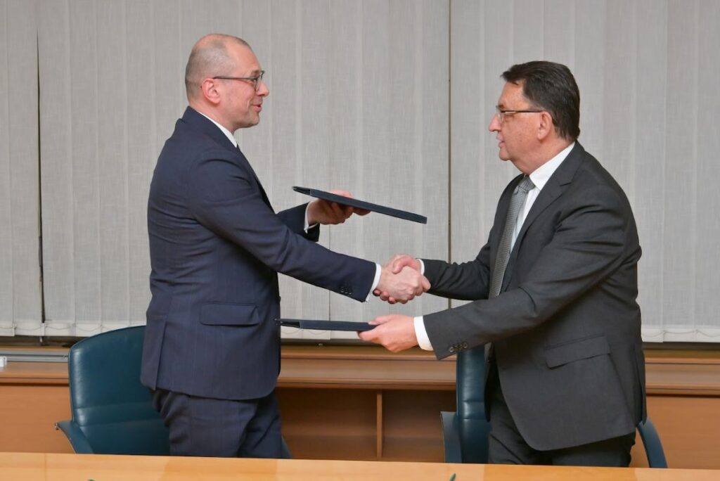 Гувернерот на Народната банка, Трајко Славески, од една страна и претседателот на Управниот одбор на НЛБ д.д. Љубљана, Блаж Бродњак и членот на Управниот одбор на НЛБ д.д. Љубљана, Антонио Аргир, од друга, потпишаа договор за меѓусебна соработка којшто ѝ овозможува на Народната банка да започне со плаќања преку СЕПА, информираат од Народна банка.