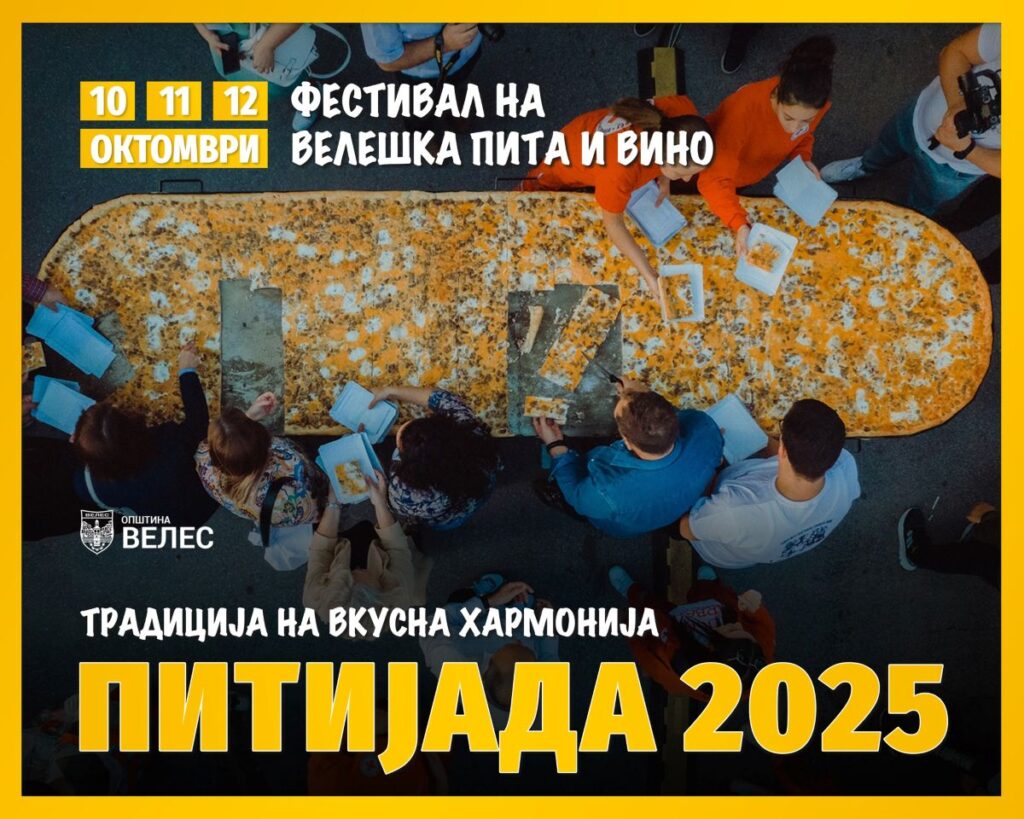 Фестивалот на велешка пита и вино “Питијада 2025” ќе се одржи во Велес од 10 до 12. октомври, информираа од Општината.