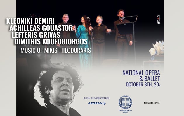 По повод 100 години од раѓањето на грчкиот композитор Микис Теодоракис, на 8. октомври во Националната Опера и Балет во Скопје, со почеток во 20 часот, ќе се одржи свечен концерт во организација на Баги Комуникации, а во соработка со Амбасадата на Грција во Македонија, информираат од таму. -Микис Теодоракис