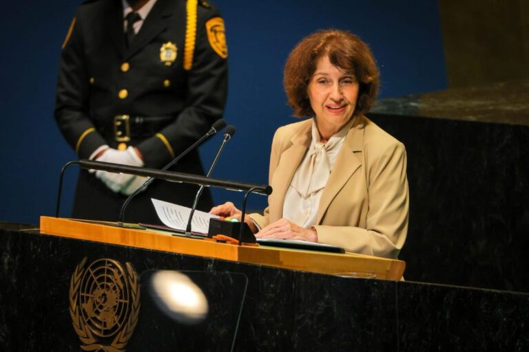 Зарем треба да се најдеме на дневниот ред на Советот за безбедност, за ЕУ да го деблокира нашето проширување, праша претседателката Сиљановска Давкова од говорницата во ОН