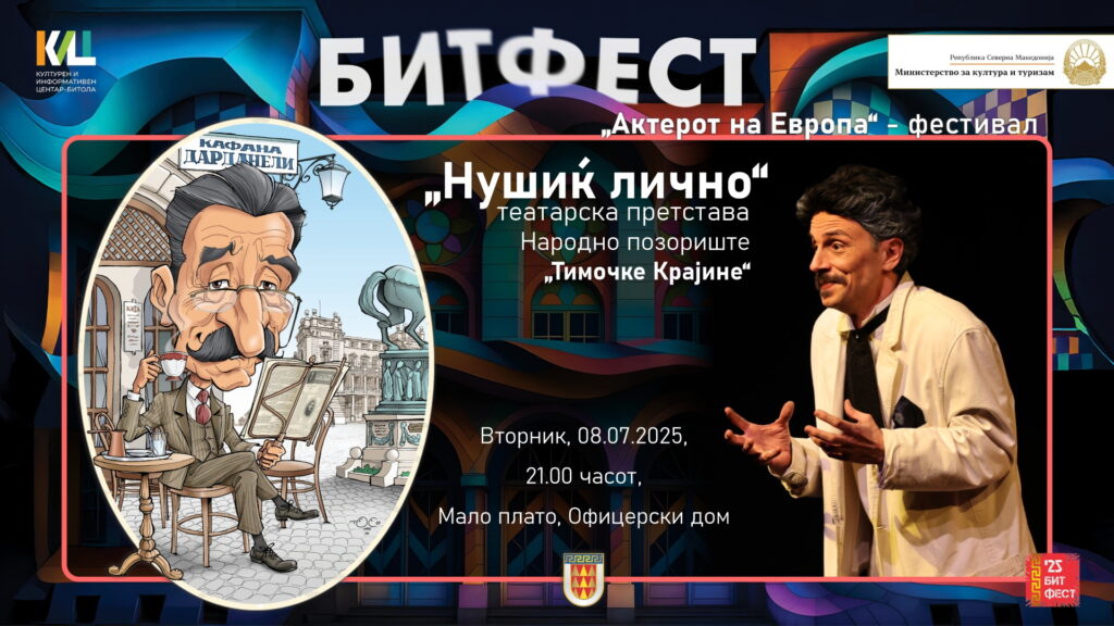 Денеска од 21 часот на Бит Фест, на Малото плато пред Офицерски дом гостува театарската претстава „Нушиќ лично“ на Народно позориште „Тимочке Крајине“. Театарската претстава доаѓа од фестивалот „Актерот на Европа“.