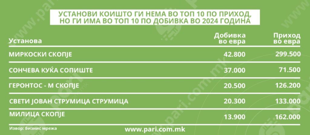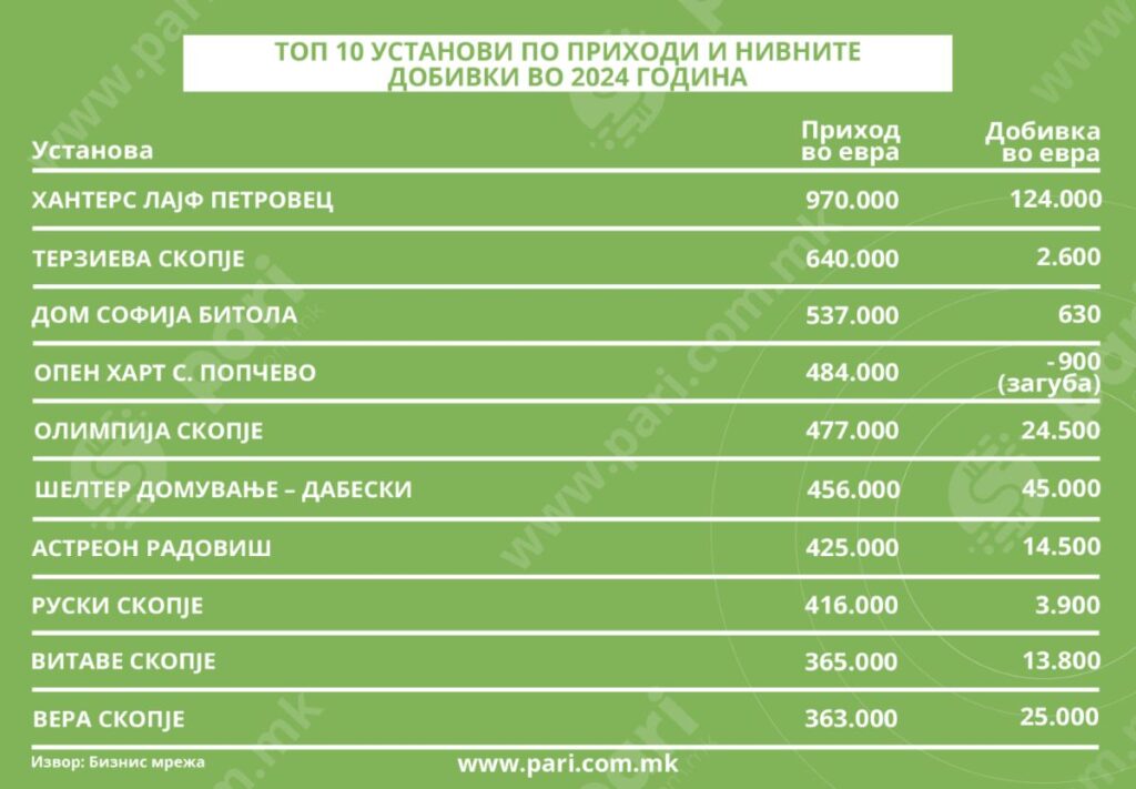 Домот за стари лица Хантерс Лајф лани имал најголеми приходи – 970.000 евра и најголема добивка – 124.000 евра.