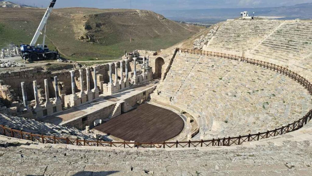 Во моментов се работи на најголемиот антички театар во Анадолија, кој што всушност е поголем и од оној во Хиерополис. На терен затекнавме механизација и работници. Се составуваат и мозаиците под земја, а кои одозгора се заштитени со стакла. Всушност и овој локалитет е влезен во проектот „Наследство за иднината“ и интензивно се откриваат нови ископини.