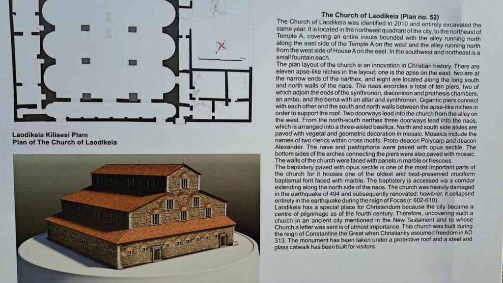 Пораката до Лаодикија, е отпечатена и на табла на влезот од остатоците од црквата, а на друга табла пак е претставена во нејзиниот оригинален изглед.