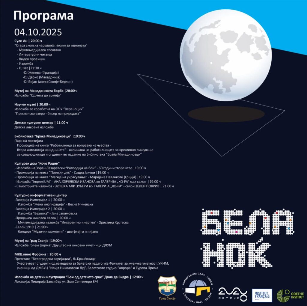 Во Скопје вечерва по 21. пат ќе се одржи манифестацијата „Бела ноќ“.