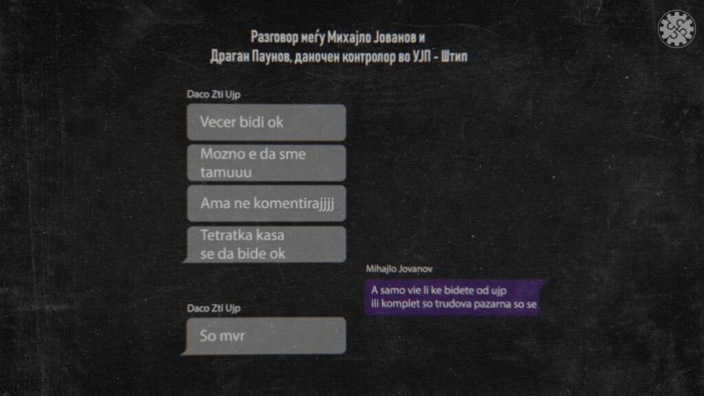 Во видео-сторијата се прикажани пораки од кои меѓу другото се гледа дека Јованов ги потмитувал инспекторите со подароци, а тие му јавувале пред да дојдат во инспекција во „Пулс“. Полициски инспектори, пак, како што се гледа од пораките, биле редовни гости во т.н. дискотеката.