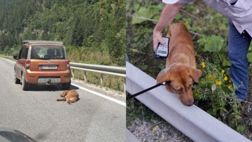 На социјалните мрежи се појавија вознемирувачки фотографии од малтретирање на куче во Крива Паланка, кое е врзано за автомобил и го влечат по пат.