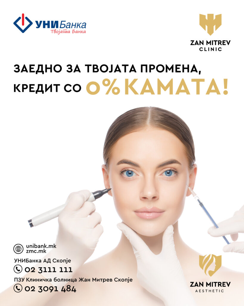 Водени од посветеноста кон потребите на клиентите, ПЗУ Клиничка болница „Жан Митрев“ Скопје и ПЗУ „Жан Митрев Дијагностик“ Струмица во соработка со УНИБанка АД Скопје, ја претставува новата и исклучително поволна можност за финансирање медицински услуги преку наменски потрошувачки кредит со 0% камата, достапен за клиентите на УНИБанка, информираат од таму.