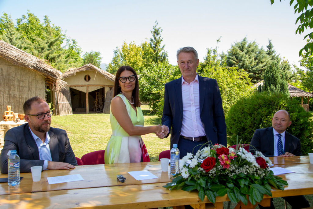 Првиот човек на ЕВН Македонија, Волфганг Маиер и директорката на Археолошкиот музеј, Магдалена Манаскова, потпишаа Договор за долгорочно користење на парцела од 6.000 квадратни метри, а на настанот беа присутни и Министерот за култура и туризам Зоран Љутков и амбасадорот на Австрија, Мартин Памер.